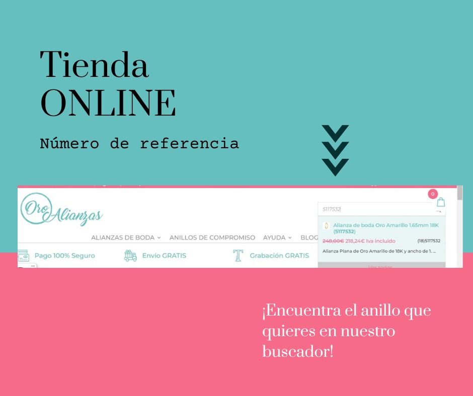 Si nos has encontrado a través de nuestras Redes Sociales (Instagram, Facebook y Pinterest) habrás visto que con cada alianza o anillo de boda que publicamos, os mostramos un número de referencia. Todos nuestros anillos tienen uno. Si es ese el anillo que te gusta, copia el número y pégalo en el buscador de nuestra Web. ¡Tachán! Ya lo tienes.