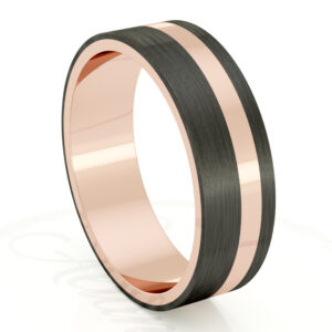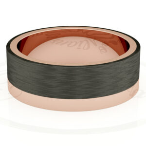 Alianza de boda 6mm Asymmetric Flat Oro Rosa y Carbono 60-OAC14R-B