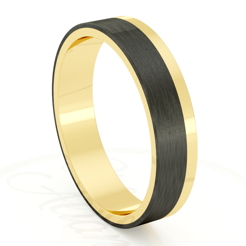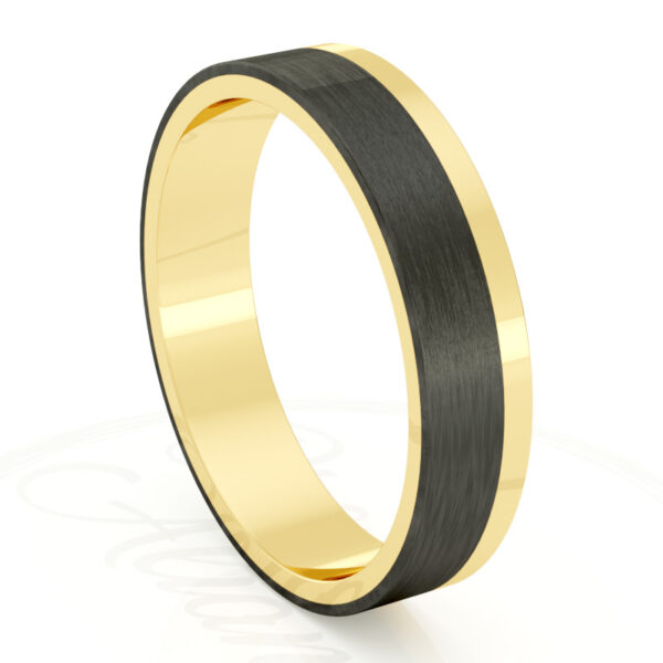 Alianza de boda 4mm Asymmetric Flat Oro Amarillo y Carbono 40-OAC10A-B