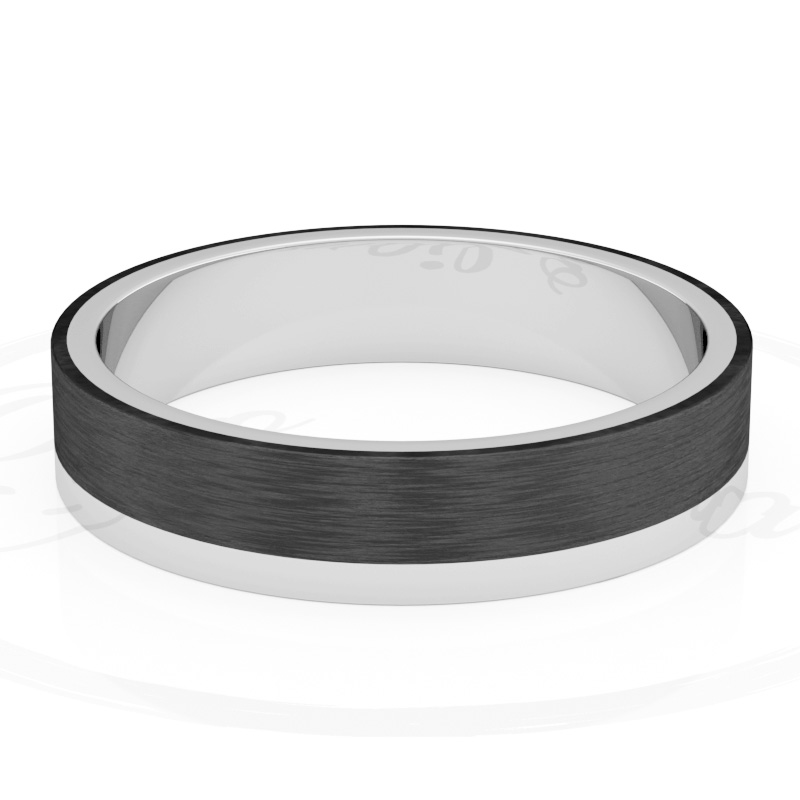 Alianza de boda 4mm Asymmetric Flat Oro Blanco y Carbono 40-OAC10B-B