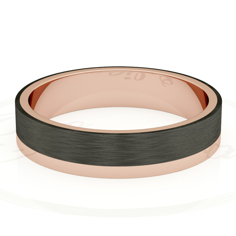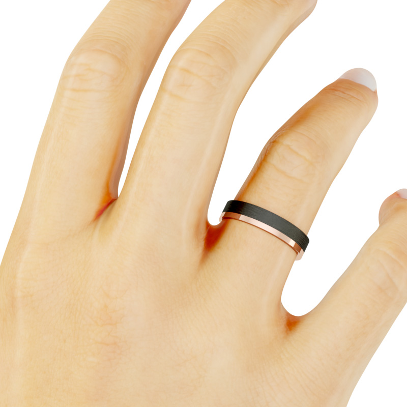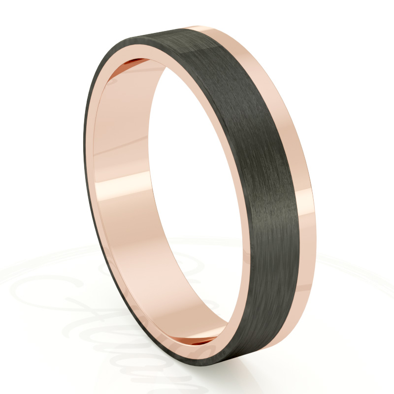 Alianza de boda 4mm Asymmetric Flat Oro Rosa y Carbono 40-OAC10R-B