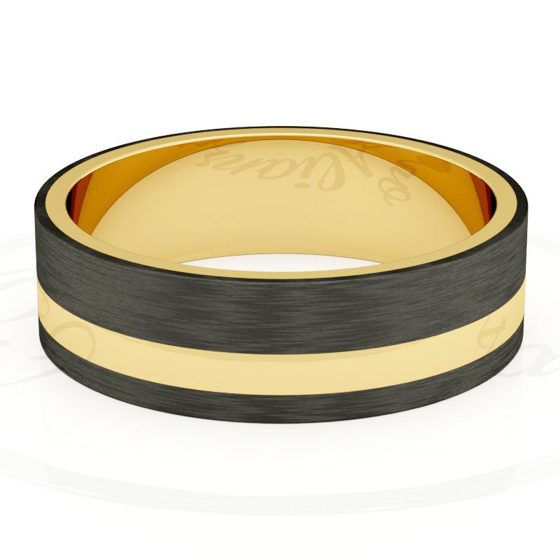 Alianza de boda 5mm Oro Gold Core Amarillo y Carbono 50-OAC12A-B