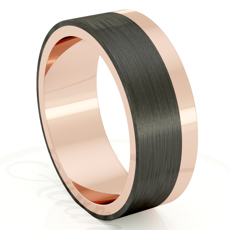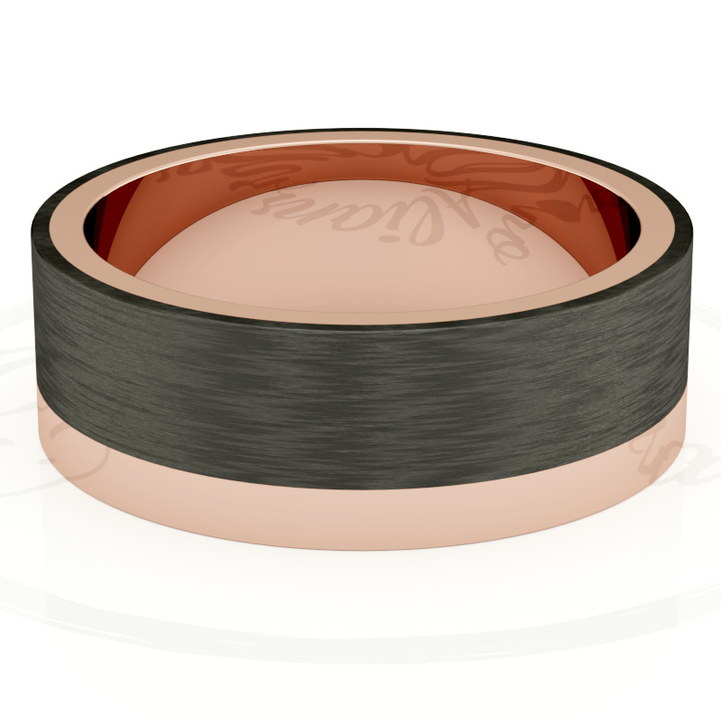 Alianza de boda 6mm Asymmetric Flat Oro Rosa y Carbono 60-OAC14R-B