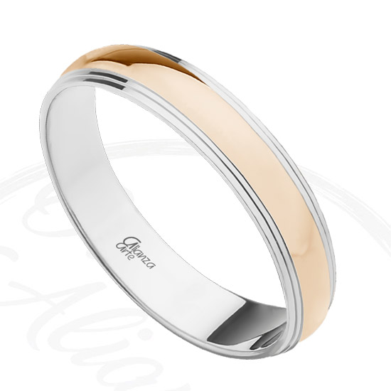 Alianza de boda Elegance modelo 40-351BRB en Oro Bicolor y 4mm de ancho. Disponible en 9 y 18 quilates, varios gruesos y varios acabados.