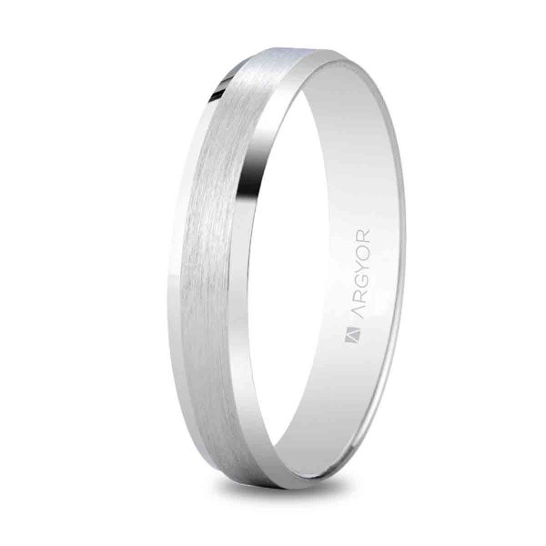 Alianza Elegance plana de Oro Blanco de 18K y ancho de 4mm con acabado Combinado. Modelo (18)5B40493. Es una joya de gran calidad fabricada en Espaรฑa de la marca Argyor.