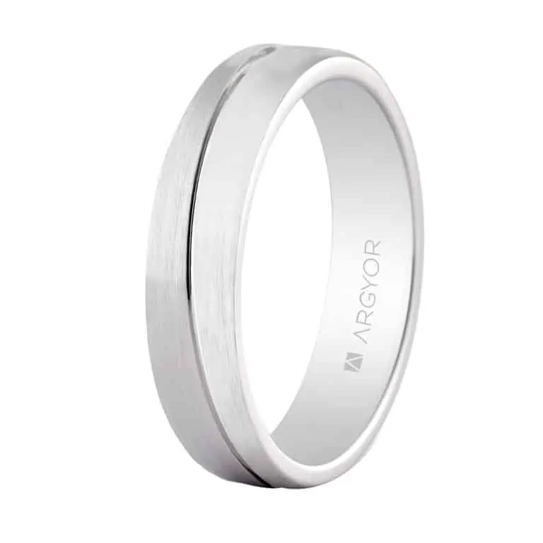 Alianza Elegance plana de Platino de 4mm de ancho, con acabado Combinado. Modelo (PT)0594005. Es una joya de gran calidad fabricada en Espaรฑa de la marca Argyor.