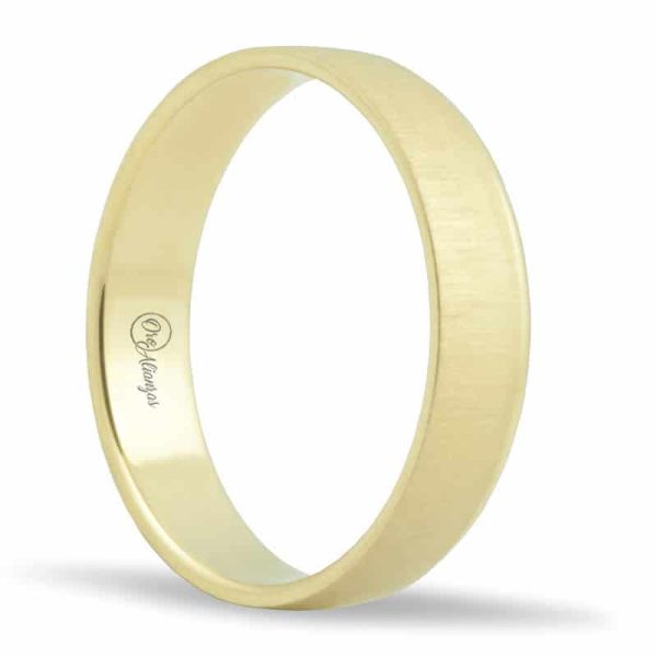 Alianza en oro Amarillo 18k con satinado lateral y un lateral en brillo y 4.5 de ancho e interior plano.