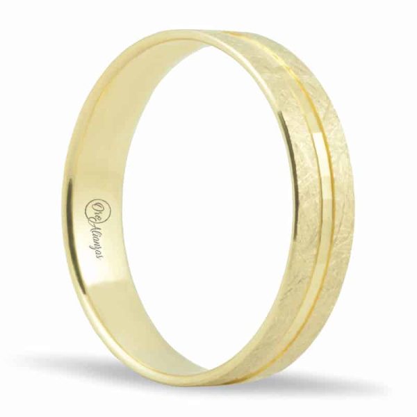 Alianza en oro Amarillo 18k plana con acabado diamantado, canal central facetado brillo y 4.5 de ancho e interior confort.