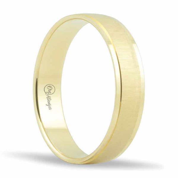 Alianza en oro Amarillo 18k laterales en brillo, canal central satinado lateral y 4.5 de ancho e interior plano.