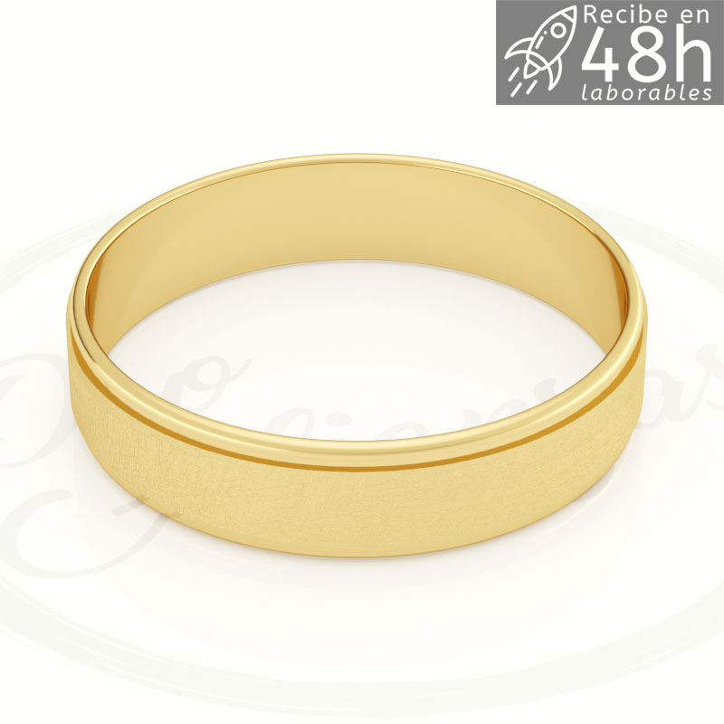Alianza en oro Amarillo 9K y 18K con central satinado, laterales en brillo y 4 mm de ancho e interior plano.