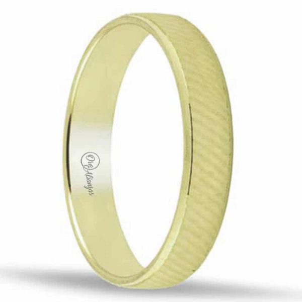 Alianza en oro Amarillo 18k media caรฑa estriado diagonal, con laterales en brillo y 4 de ancho e interior plano.