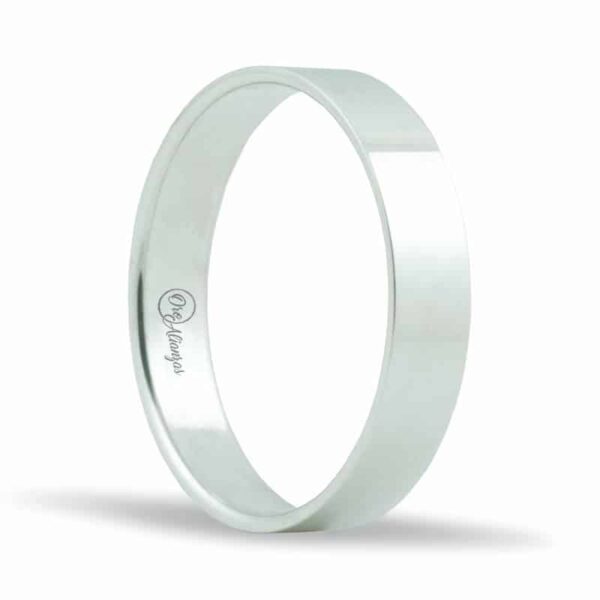 Alianza en oro Blanco 18k plana y 4 de ancho e interior plano. Disponible en los siguientes acabados : Brillo, Diamantado, Satinado, Satinado lateral.