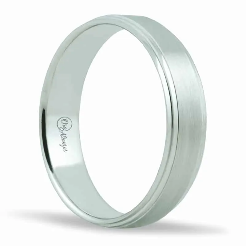 Alianza en oro Blanco 18k plana con satinado central, doble escalรณn lateral en brillo 5 de ancho e interior confort.